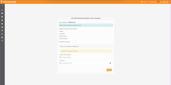 Please select your company name on the list available to you. Your company name will exist if you have an ongoing paid subscription to Breadcrumb.
