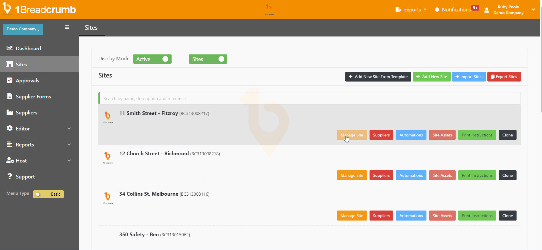 - Navigate to the Site tool located on the left-hand toolbar of your Breadcrumb portal