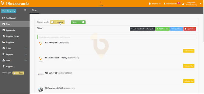 Once a site is deactivated, it will no longer appear on your main site screen, reducing clutter of unused sited. However, they can still be found easily if information is needed to be extracted or needed to be reopened.