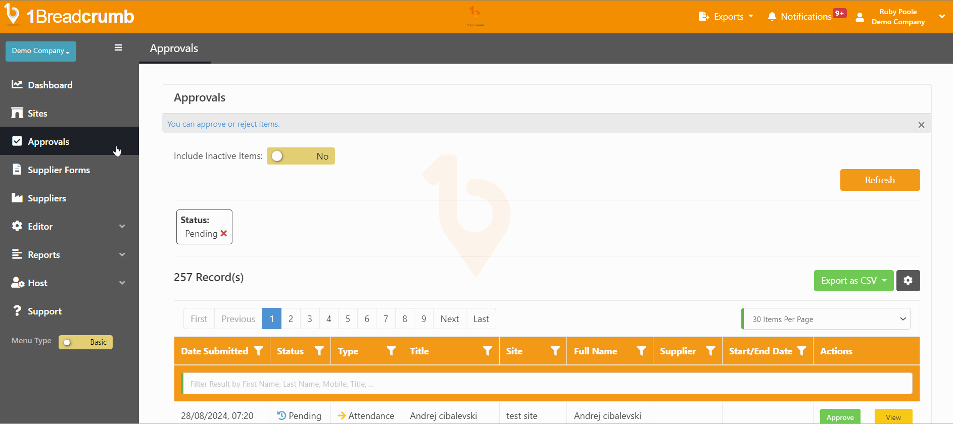 - Filter the Type by Inductions and ensure the Status of the induction is Pending