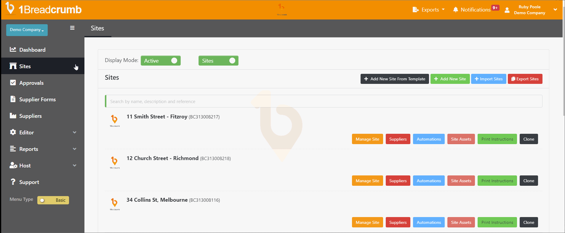 Permissions: Company/Site Hosts. If you do not have these permissions, please reach out to your Breadcrumb administrator.